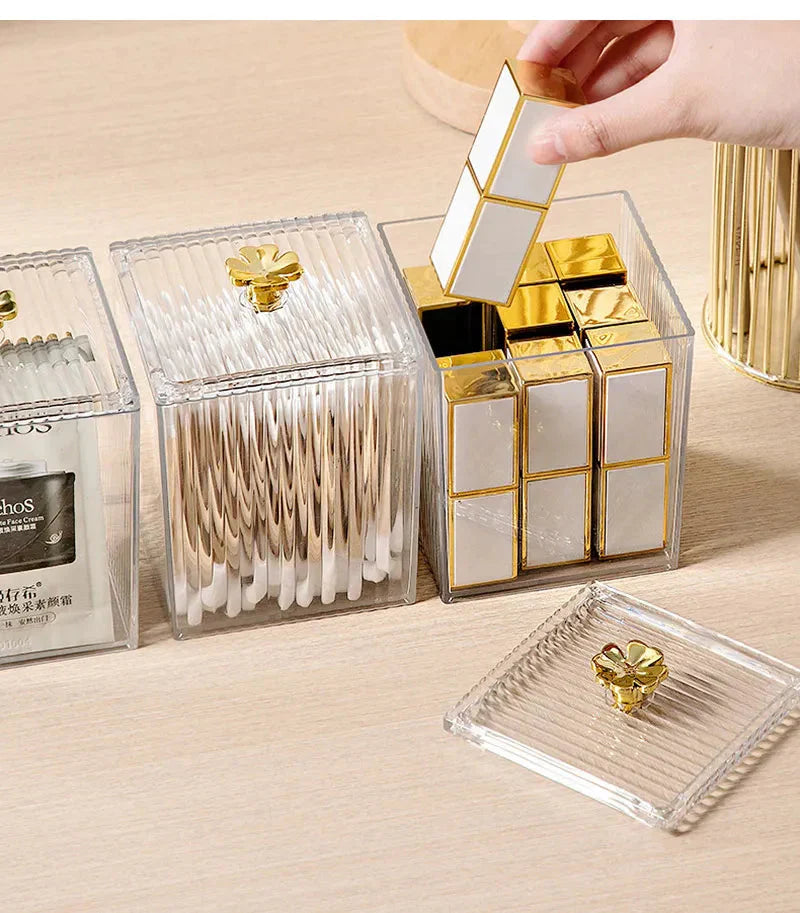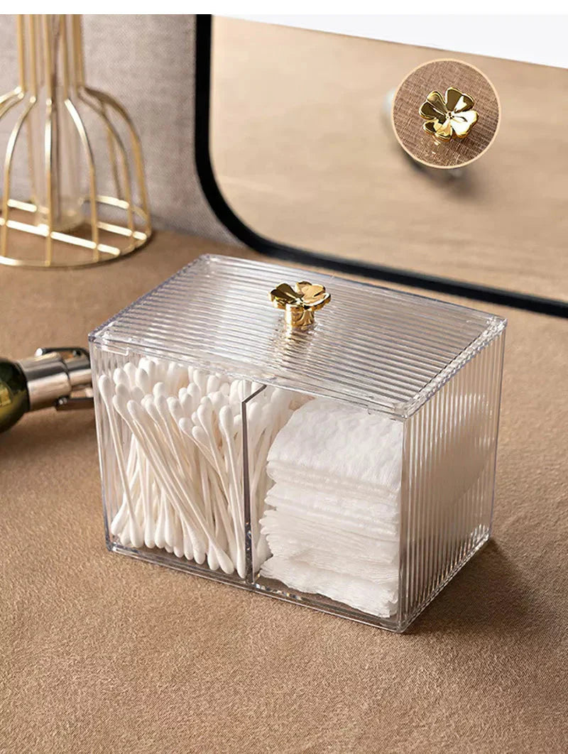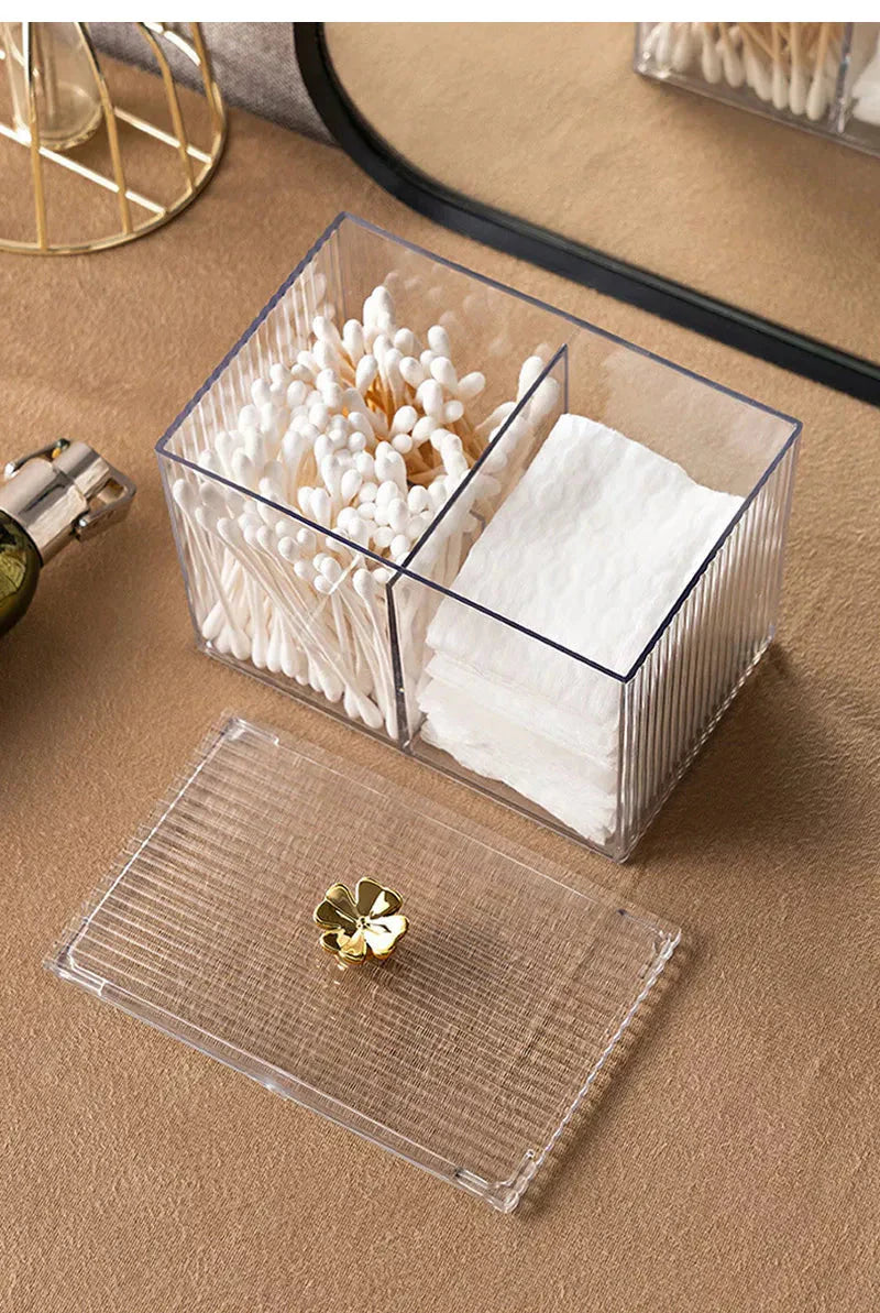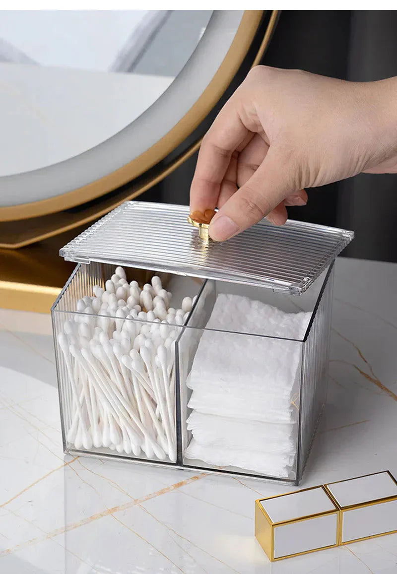 Eleve a organização do seu espaço com a Caixa Organizadora Transparente  - Porta Algodão e Cotonete, uma solução brilhante para o armazenamento de maquiagem e itens essenciais de banheiro. Este organizador de armazenamento não oferece apenas praticidade, mas adiciona um toque de moda ao seu ambiente.